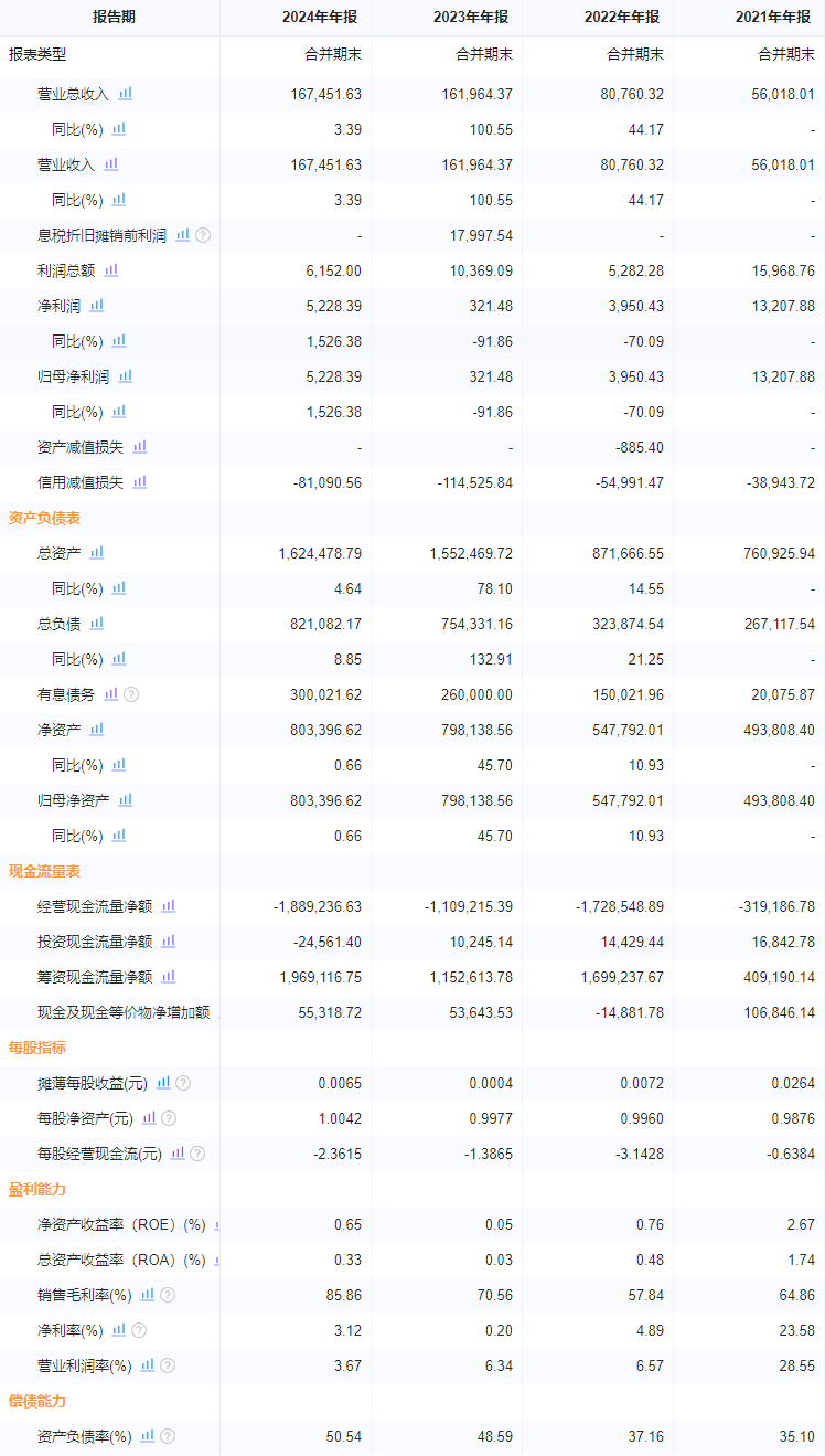 据企业预警通数据显示,2021年至2024年,京东盛际小贷的营收分别为5.6亿元、8.08亿元、16.2亿元和16.7亿元,营收增速在2023年暴涨100%后于2024年大幅放缓,同比增长仅3.39%;净利润分别为1.32亿元、3.95亿元、321万元和5228万元,2022年和2023年其利润分别同比下滑70%和92%;2024年净利润同比暴增1526%。在2024年上半年,其亏损0.85亿元,下半年,其实现了扭亏为盈。